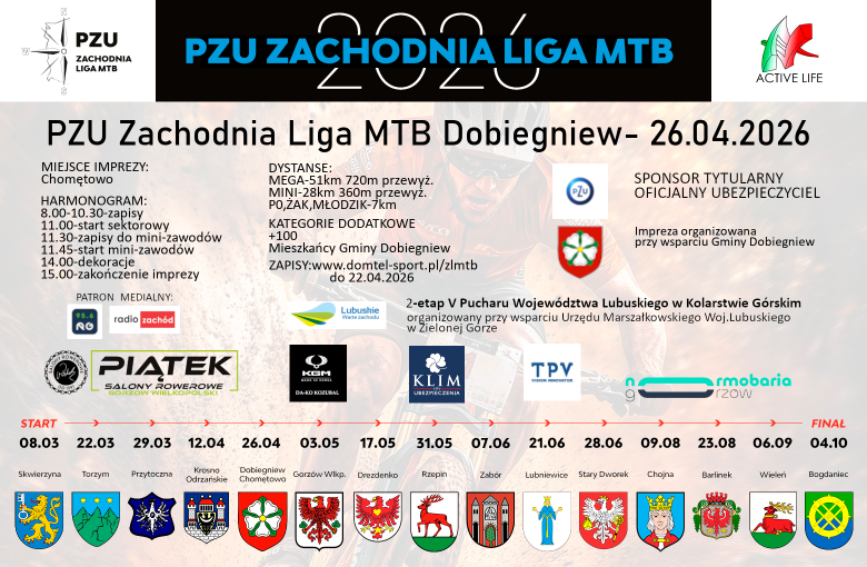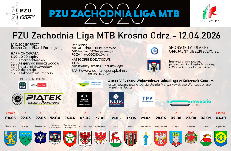 Impreza jest organizowana w ramach cyklu PZU Zachodnia Liga MTB 2026 dzięki finansowemu wsparciu Urzędu Marszałkowskiego Województwa Lubuskiego w Zielonej Górze.